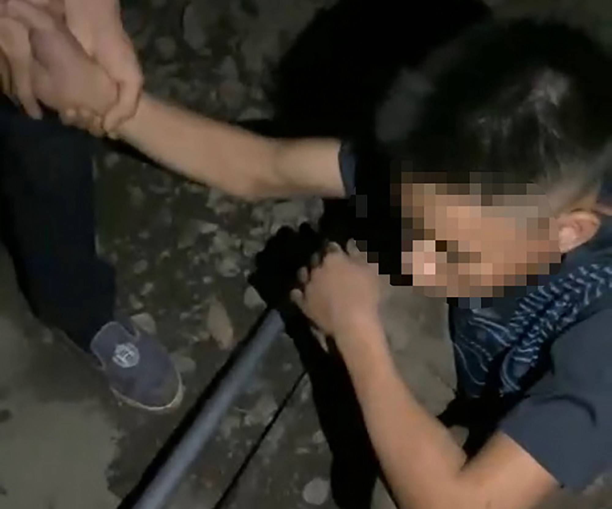 Tại đây, người dân còn thu được một số dụng cụ là cuốc, xà beng bên cạnh thanh niên này.