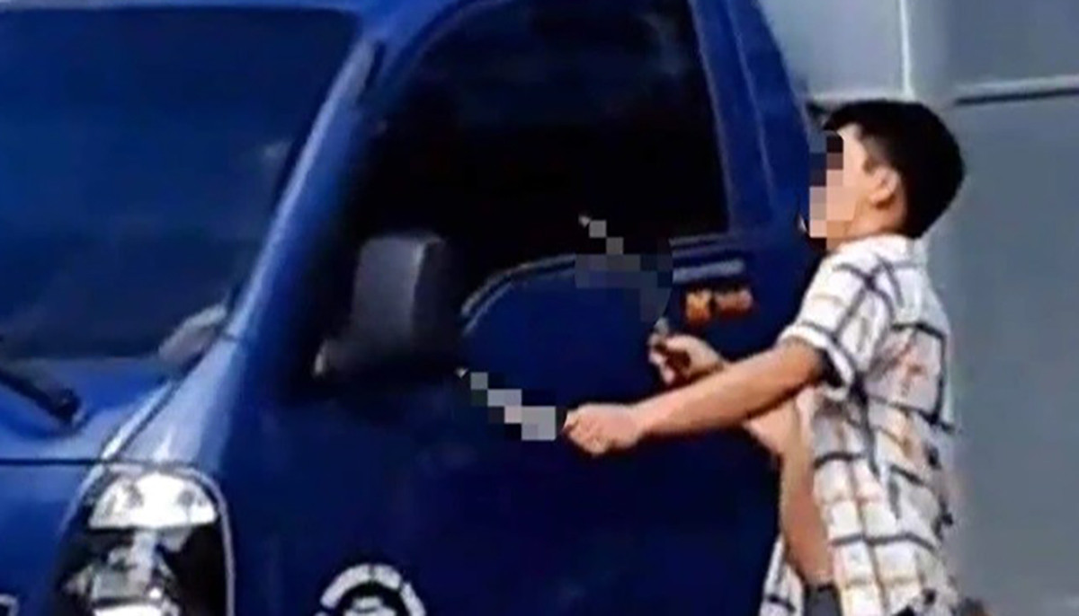 Người này đã dùng dao chém vỡ nhiều gương ô tô, rạch phần thân xe, miệng liên tục chửi bới. Quá sợ hãi, nhiều người tham gia giao thông gần đó đã phải quay đầu xe.