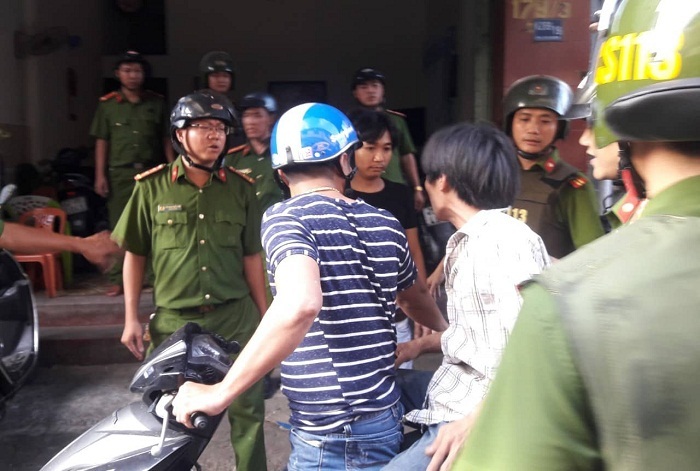 | Lực lượng chức năng khống chế đối tượng đưa về trụ sở làm việc |