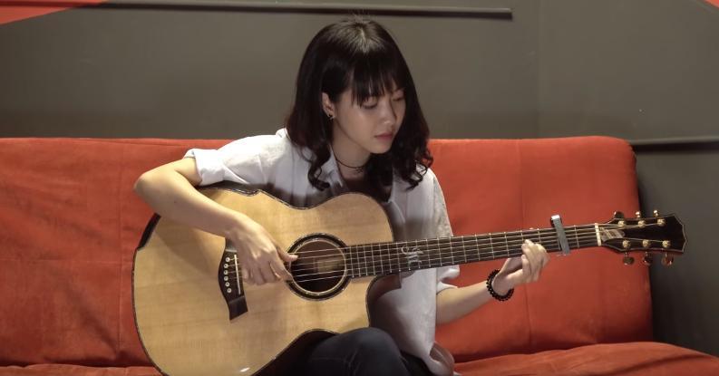 Khác với mọi bản cover khác, Jang Mi xuất hiện trong trang phục áo dài trắng tinh khôi, thướt tha, tay đệm đàn ghi ta vô cùng ấn tượng.