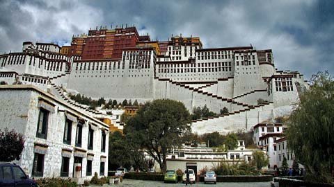 Đến Tây Tạng, không thể không đến cung điện Potala (Bố Đạt La Cung, ở độ cao 3.700m) được khởi công xây dựng từ năm 637 trên ngọn đồi Marpo Ri. Theo lịch sử của miền đất Tây Tạng, Potala là nơi ở của Quan Thế Âm Bồ Tát, và là nơi ở của các đức Đạt Lai Lạt Ma. Du khách phải bước qua 432 bậc mới đến chánh điện. Nhìn bên ngoài, Potala nguy nga tráng lệ, được chính quyền “son phấn” cho ra dáng vẻ của một di tích thế giới. Còn bên trong là sự cũ kỹ, mục nát theo thời gian. Cộng vào đó, mùi mỡ bò, mỡ cừu nhập từ Nepal đã được đốt cháy, những ai khó thở sẽ càng thấy khó thở hơn. Nhưng đã đến Tây Tạng, phải đến Potala. Với du khách, đến để cảm nhận những giá trị văn hoá, bề dày lịch sử của một miền đất “nóc nhà của thế giới” với bao nhiêu huyền thoại mê hoặc lòng người. Còn với người dân Tạng, đến cung điện Potala là mục đích của một kiếp người, là cõi vĩnh hằng, là chốn linh thiêng để tin về vòng tròn luân hồi ở kiếp sau…