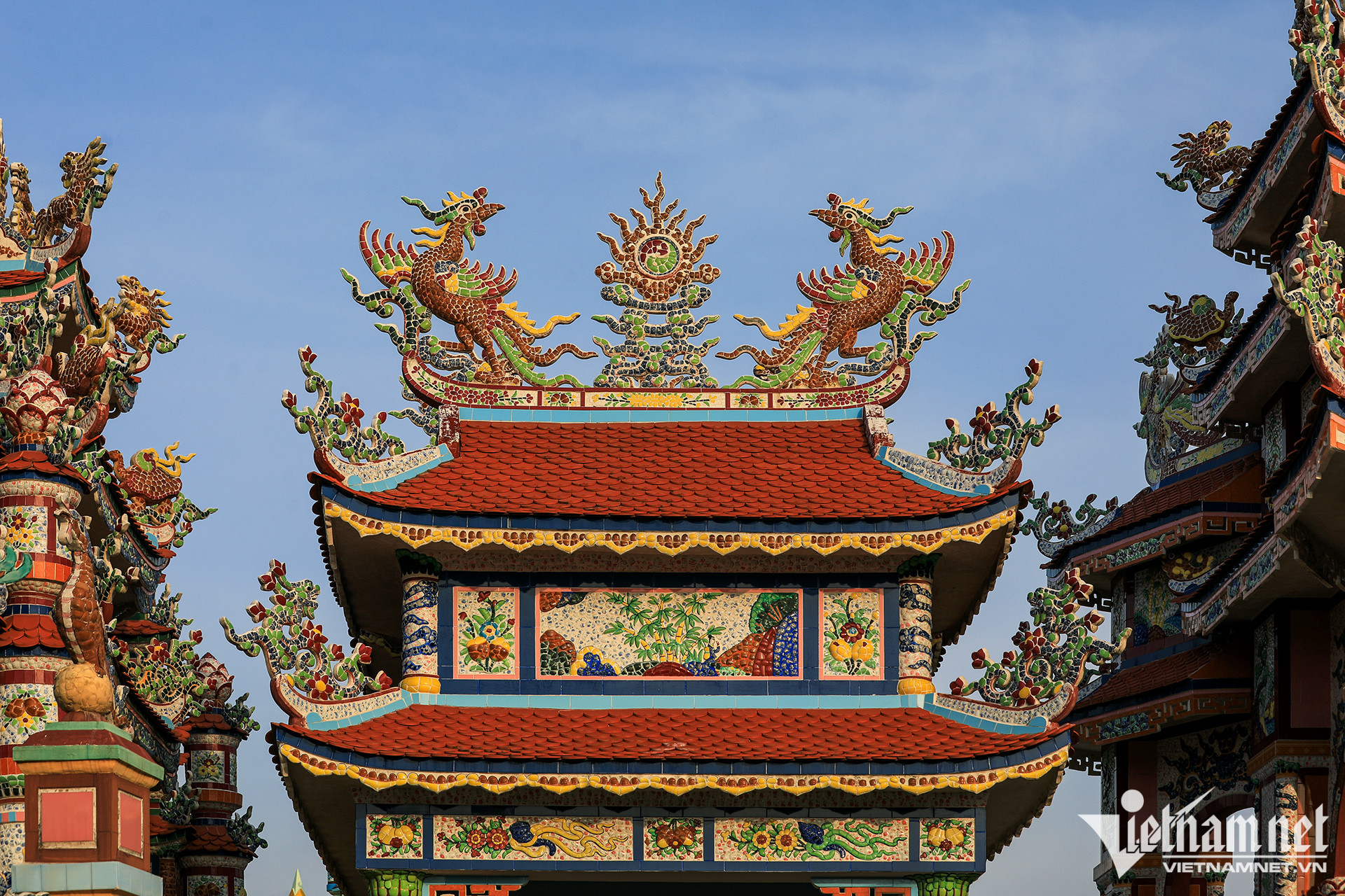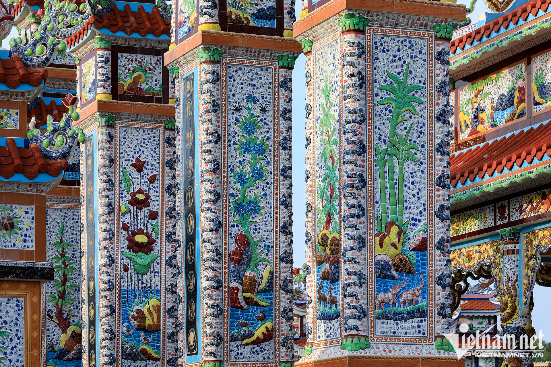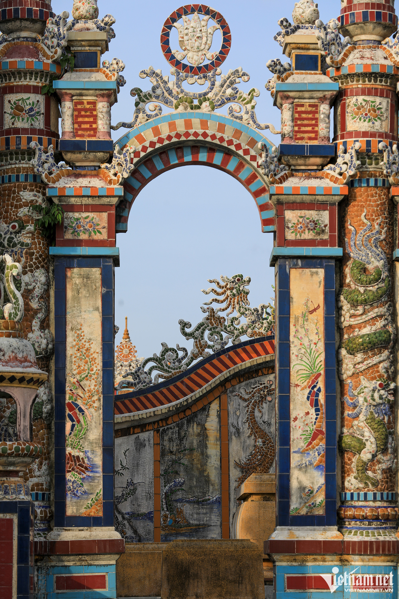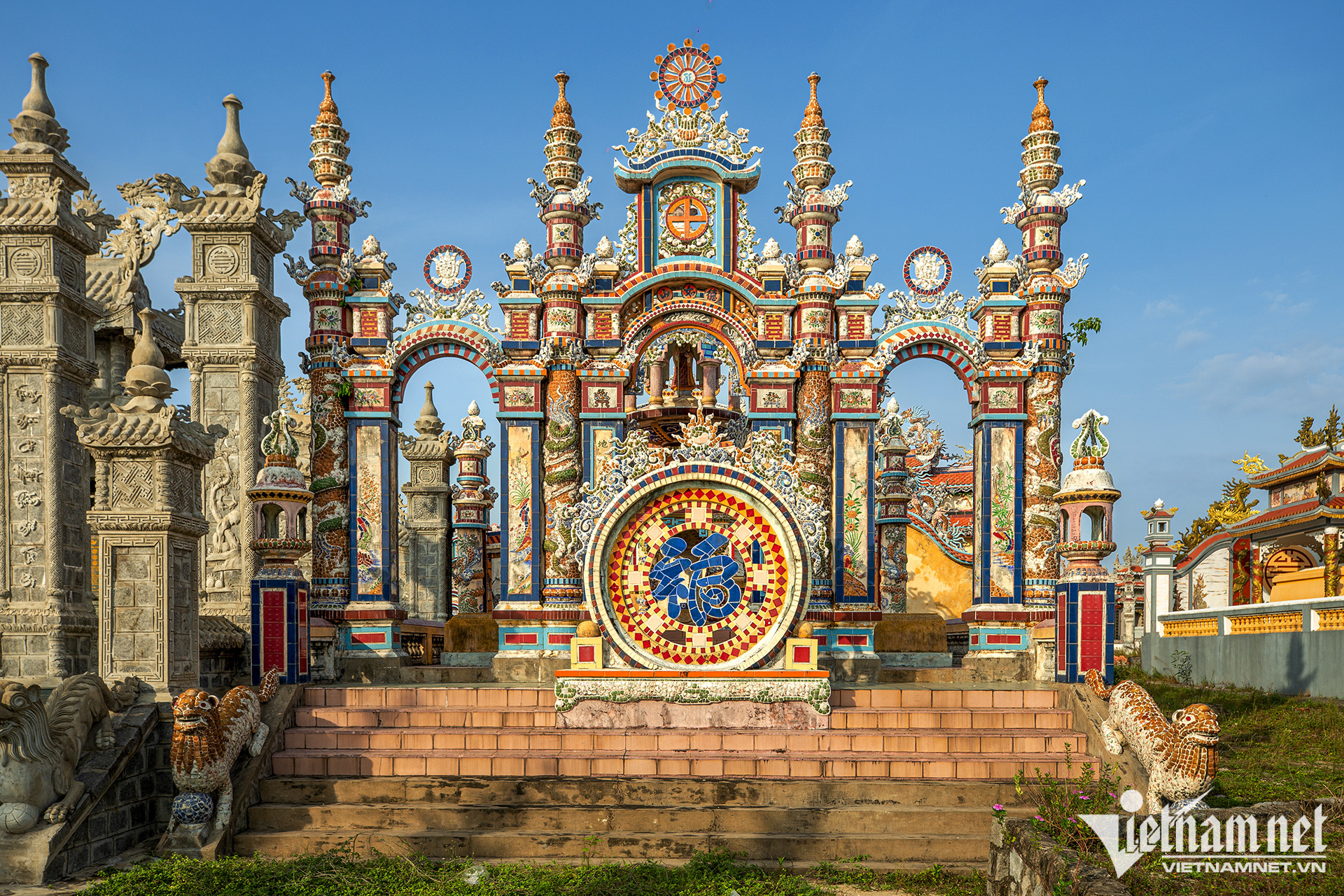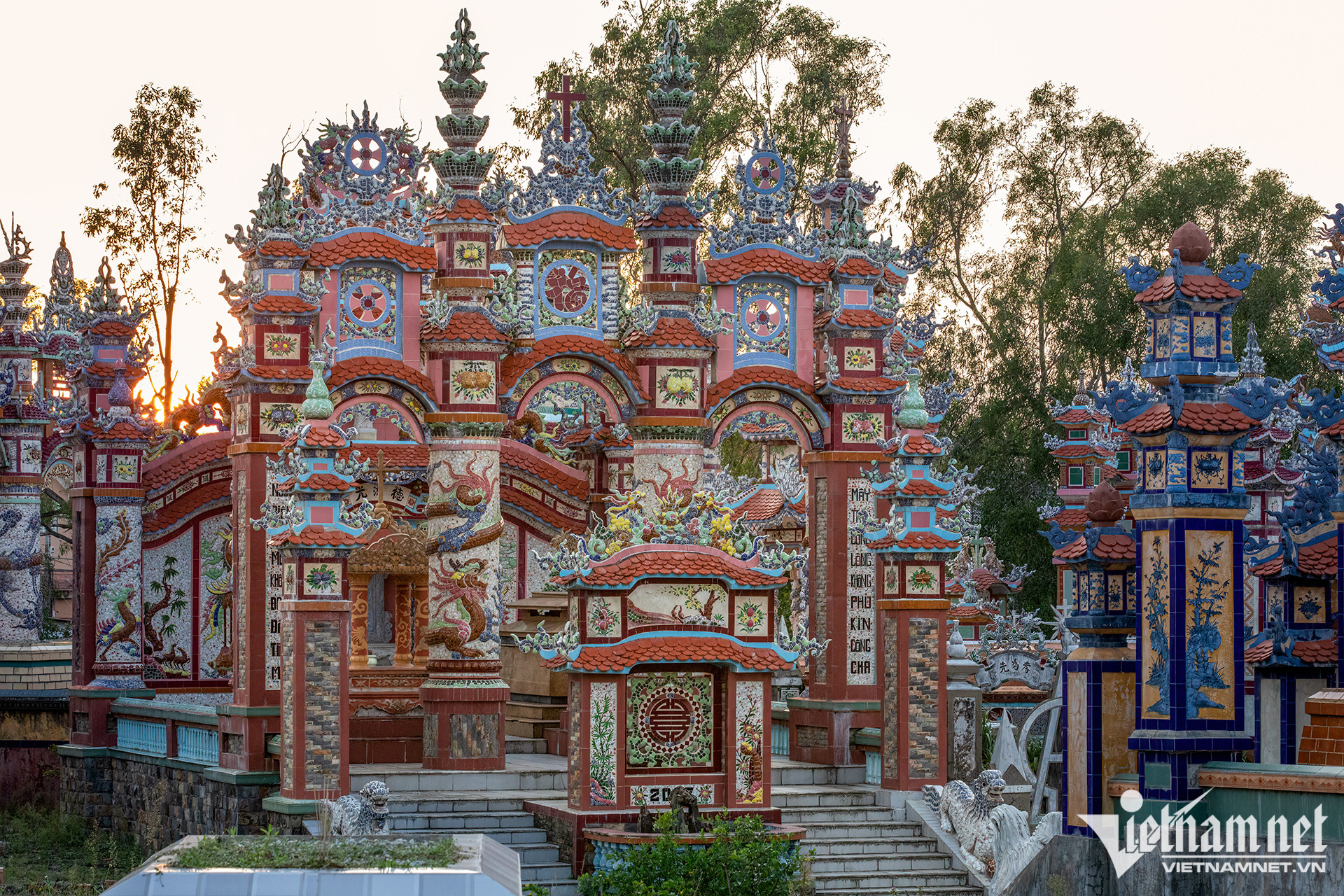Các lăng mộ được thiết kế như mộ vua chúa, cũng tam quan với mái ngói lưu ly, câu đối, bia đá, trụ biểu, la thành... tất cả đều được trang hoàng rực rỡ từ bàn tay người thợ khảm sành sứ giỏi.