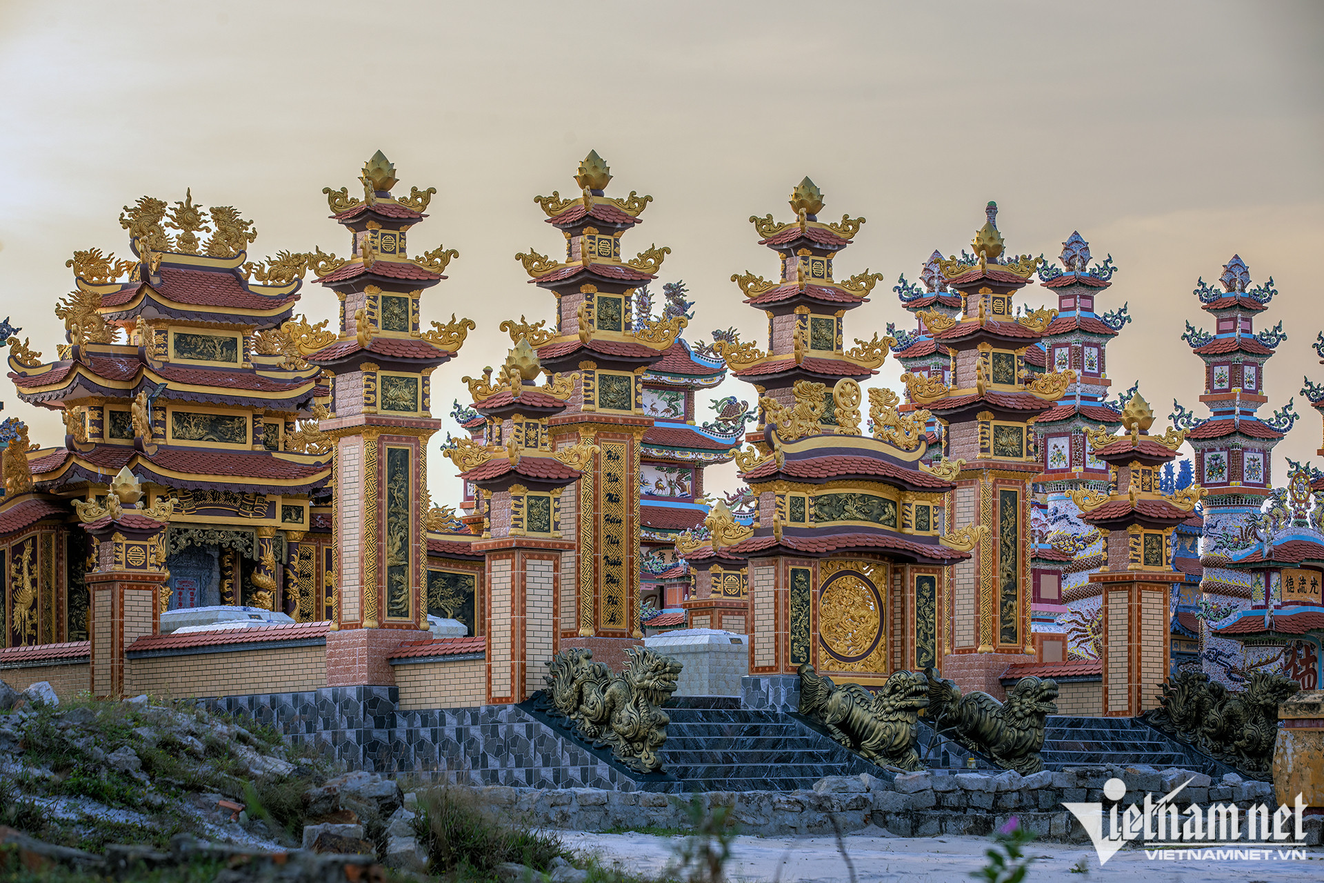 Hàng nghìn lăng mộ ở nghĩa trang An Bằng, Thừa Thiên Huế được xây dựng và thiết kế kiểu trạm trổ khảm, sành sứ hoa văn cầu kỳ nhái phong cách kiến trúc lăng Vua Khải Định với chi phí từ vài trăm triệu lên tới hàng tỷ đồng một ngôi.