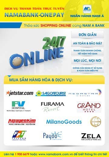 Chỉ cần là chủ thẻ ghi nợ nội địa Nam A Card, đăng ký sử dụng dịch vụ SMS Banking và Internet Banking của Ngân hàng Nam Á là khách hàng sẽ được sử dụng dịch vụ thanh toán nhiều tiện ích này mà không cần đăng ký dịch vụ hay tốn bất kỳ chi phí sử dụng nào như: thanh toán mua vé máy bay trực tuyến (Jetstar Pacific,….), thanh toán phòng khách sạn (Continental, Grandhotel,…) thanh toán vé xem phim Megastar, đặt tour du lịch (Saigontourist, Vietnam Today Travel ,….) và thanh toán hàng hóa trên các website đối tác của Onepay (Siêu thị điện máy Nguyễn Kim, siêu thị điện máy Mediamart, bệnh viện FV….).
