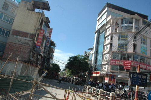 Trước đó, ngày 6/7, ngôi nhà này đã được  lực lượng chức năng căng dây, cắm biển thông báo nguy hiểm, chống ván, nẹp cọc và cấm mọi người qua lại nơi đây, khiến cho việc hoạt động kinh doanh và vấn đề giao thông đi lại của người dân gặp vô cùng nhiều khó khăn.