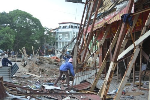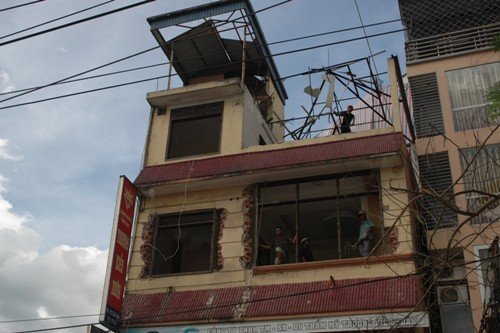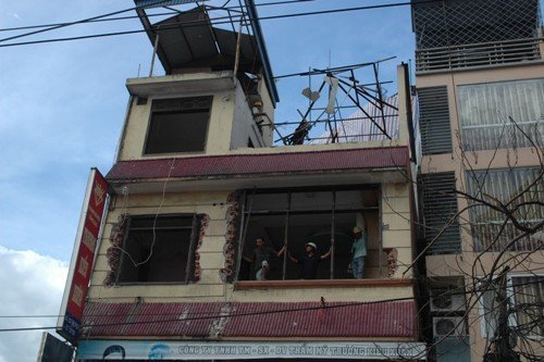 Đến chiều cùng ngày, với khoảng hơn chục công nhân đã tham gia tiến hành tháo dỡ hết các cánh cửa và một phần mái nhà chủ yếu bằng phương tiện thủ công nhằm tránh ảnh hưởng đến các ngôi nhà bên cạnh và người dân trong khu vực.