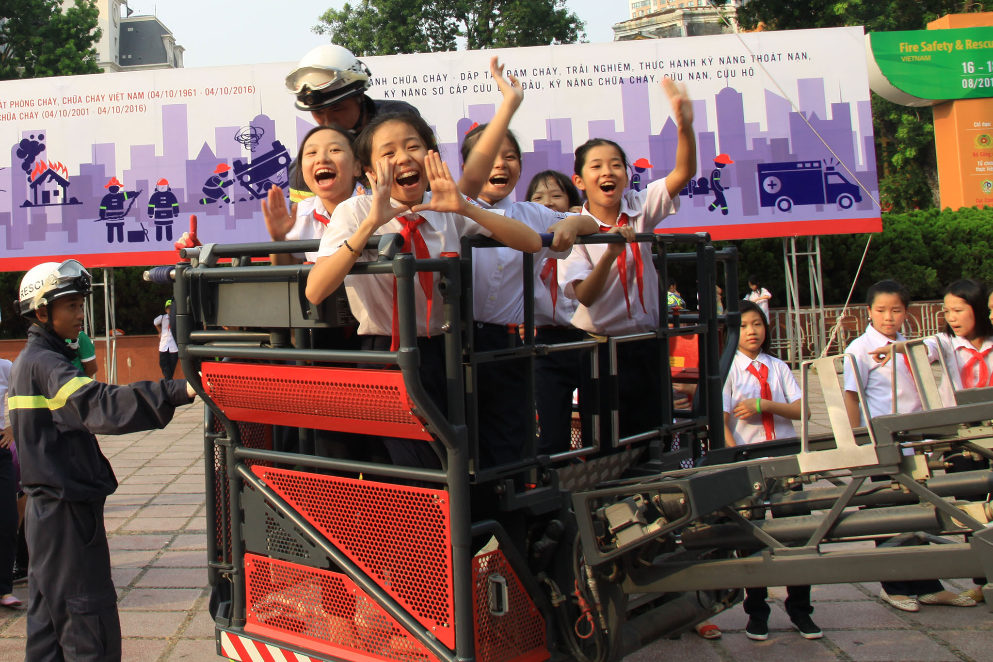 Đây cũng là dịp để khách tham quan cũng như các đội phòng cháy chữa cháy và cứu nạn cứu hộ chuyên trách cơ sở được tận mắt thấy và trải nghiệm những phương tiện phòng cháy chữa cháy và cứu nạn cứu hộ hiện đại.