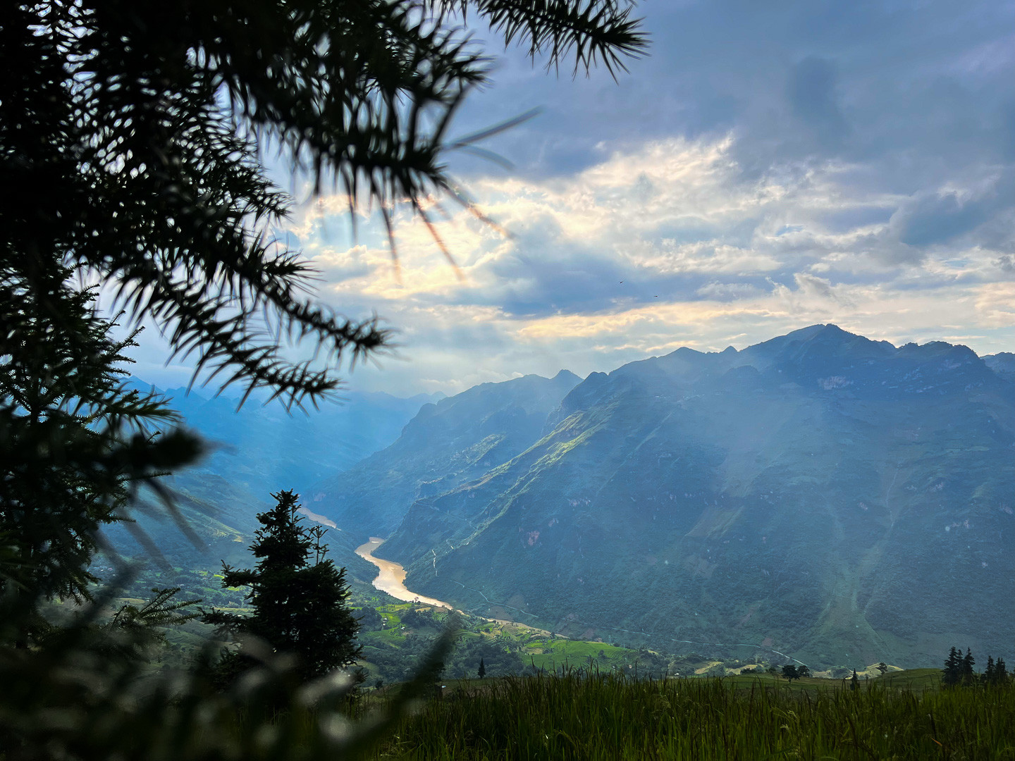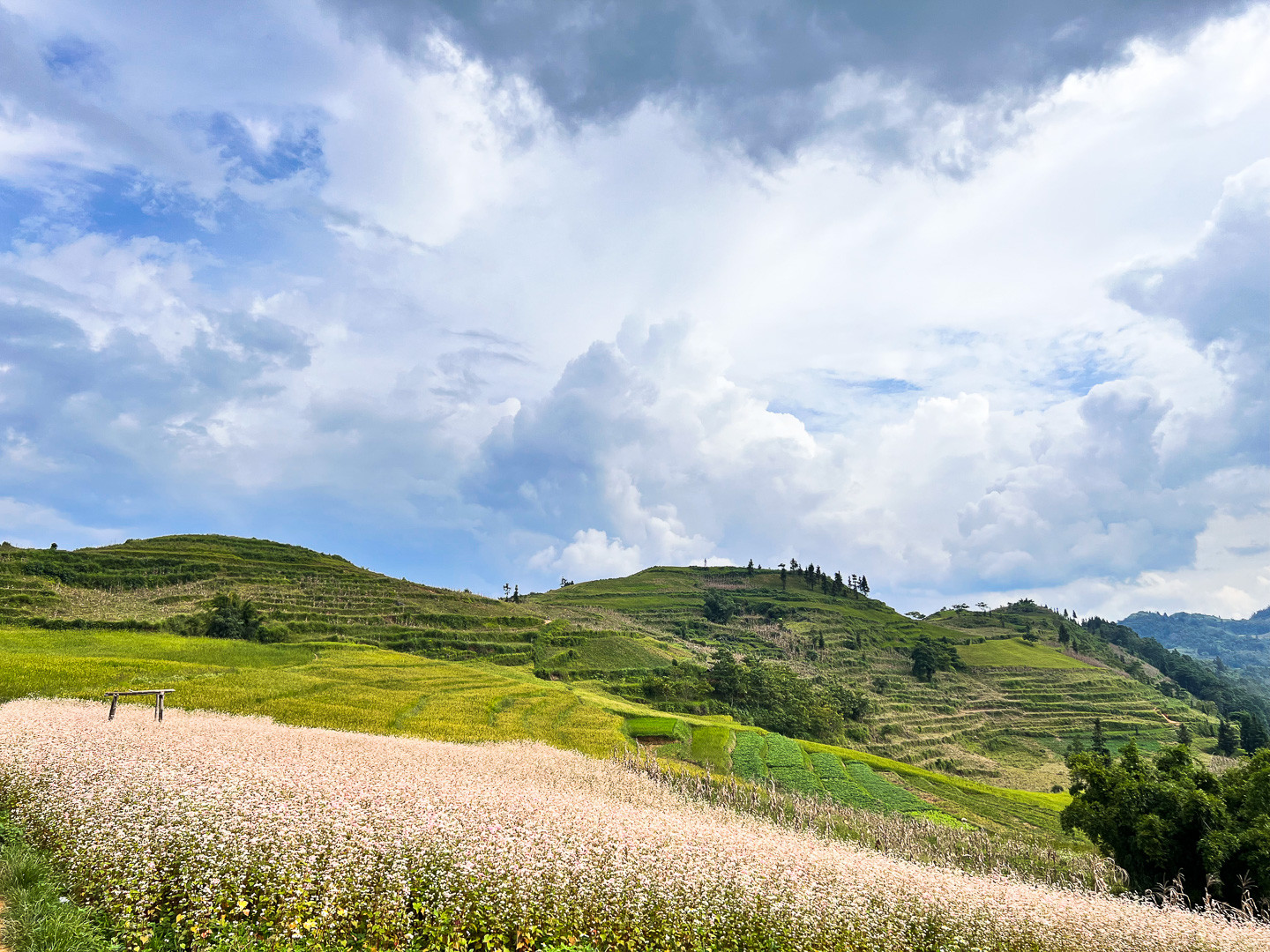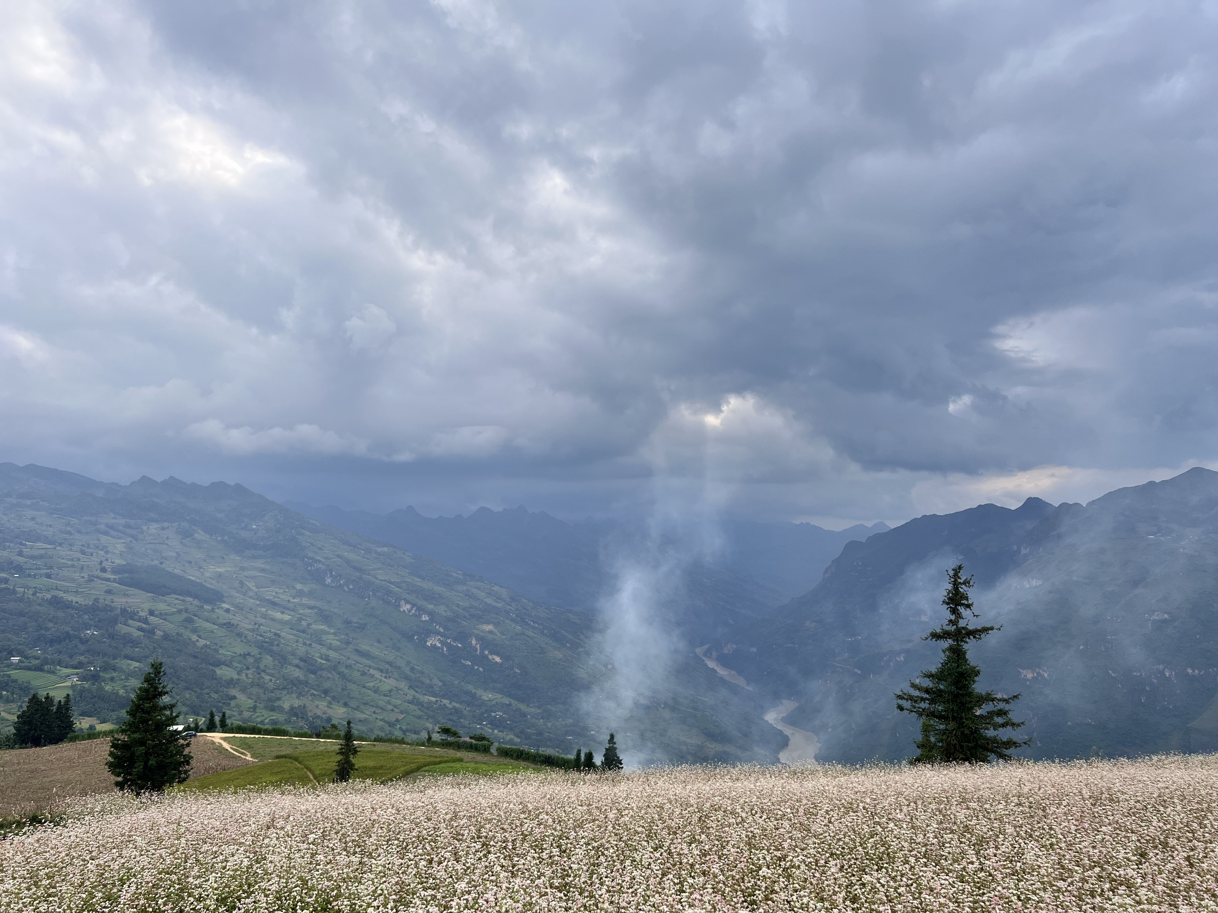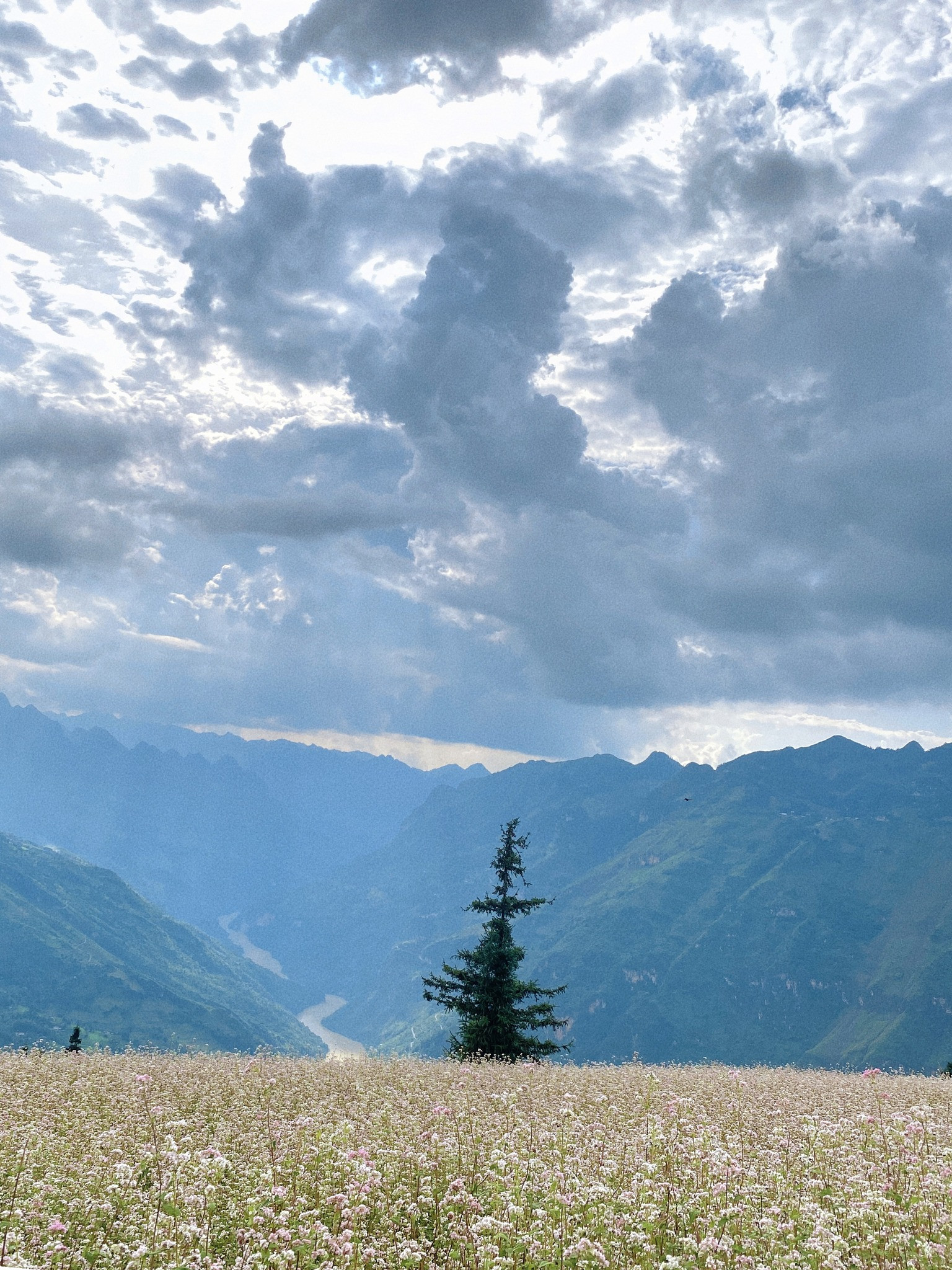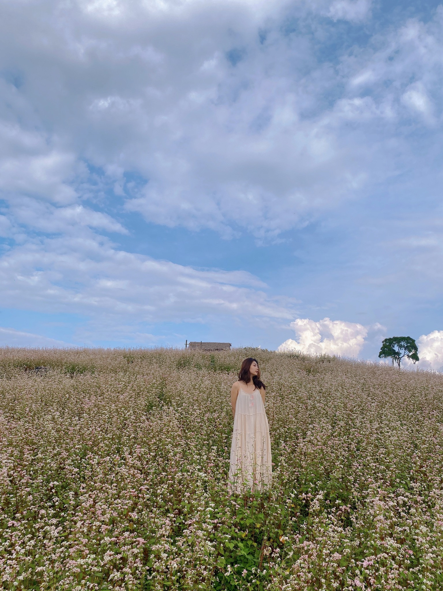 Chuyến này, Mộc dành 2 ngày 1 đêm trải nghiệm cung đường khoảng 100km Bắc Quang - Quang Bình - Đèo Gió - Xín Mần. "Khi tới thảo nguyên, mình như vỡ òa vì khung cảnh tươi đẹp, thanh bình hiện ra trước mắt. Góc nào cũng rất ấn tượng khi lên ảnh, đặc biệt là cánh đồng tam giác mạch hướng nhìn ra đồi núi và dòng sông", Mộc chia sẻ.
