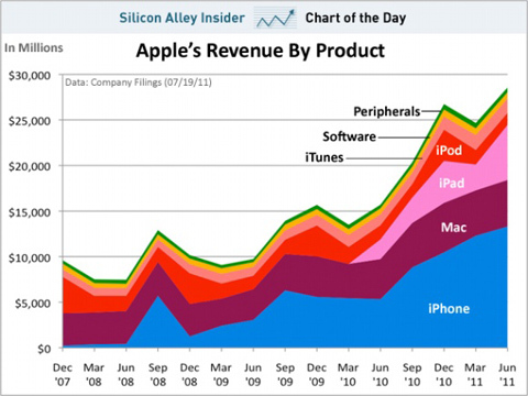 Apple phá kỷ lục vừa lập ra vào tháng 4 trước đó, đưa Quý 3 của năm tài khóa 2011 trở thành Quý đem lại doanh thu cũng như lợi nhuận lớn nhất trong lịch sử của Táo Khuyết.