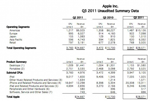 Apple vừa mới công bố Báo cáo tài chính quý 3 năm 2011 với những con