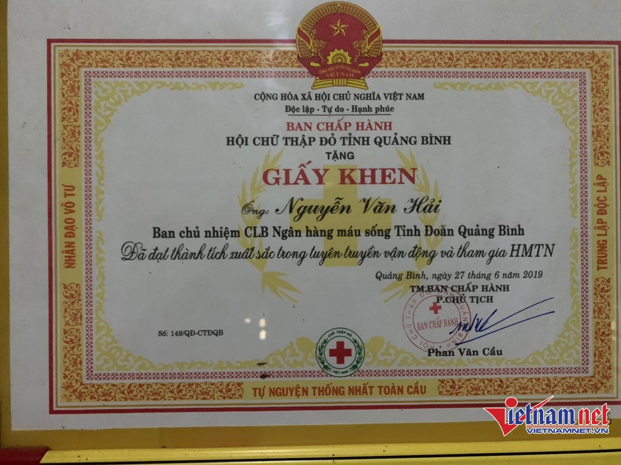 Dù trong thời sinh viên hay trong những năm tháng giảng dạy ở trường nghề, Nguyễn Văn Hải luôn nhiệt tình trong các phong trào hoạt động. Thầy Hải từng 11 lần hiến máu cứu người và là chủ nhiệm CLB Ngân hàng máu sống của Trường Đại học Quảng Bình.