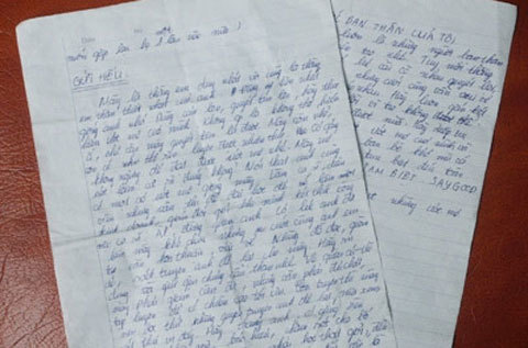 | Trước khi quyên sinh, em D. đã để lại 4 lá thư tuyệt mệnh (Ảnh: Nhà báo và công luận) |