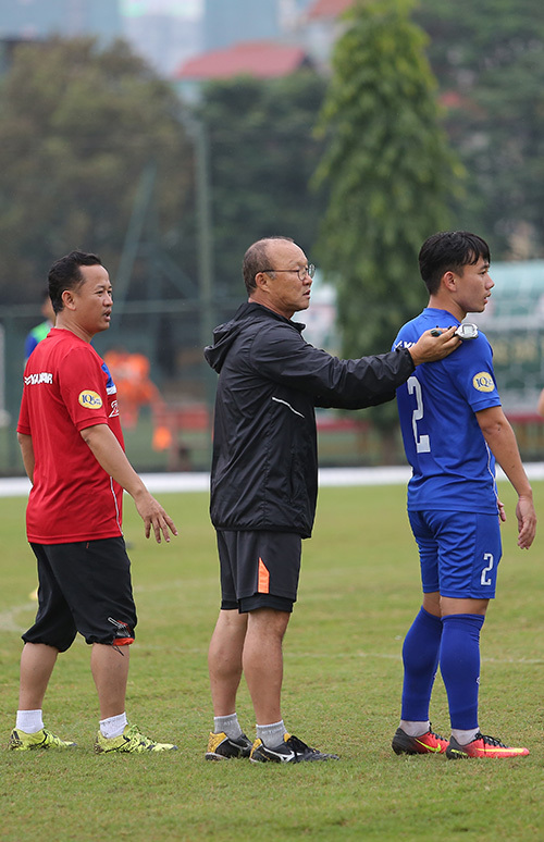 Được quan tâm, HLV Park Hang Seo đã không còn sử dụng những bài tập “vỡ lòng” như những ngày trước. Ông thầy người Hàn Quốc bất ngờ chia đôi đội hình đá đối kháng. Một đội gồm Văn Quyết, Công Phượng, Xuân Trường, Văn Toàn, còn đội còn lại có Duy Mạnh, Văn Hậu, Minh Vương…