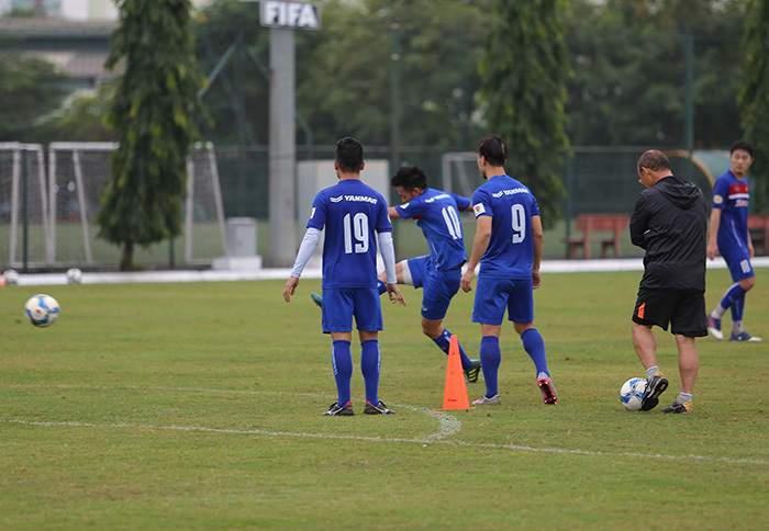 Cuối buổi tập, những chân sút tốt nhất của đội tuyển Việt Nam như Quang Hải, Công Phượng, Xuân Trường, Văn Toàn, Văn Quyết… đã được yêu cầu tập đi tập lại bài dứt điểm cầu môn. Tỉ lệ trúng khung thành dù không cao, nhưng HLV Park Hang Seo vẫn tỏ ra hài lòng khi tất cả đều thể hiện sự cố gắng.