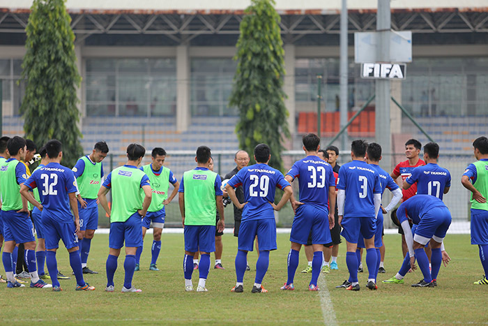 Trong sáng nay, do trời mưa và lạnh, HLV Park Hang Seo đã cho các học trò nghỉ tại khách sạn. Vào buổi chiều, khi thời tiết tốt hơn, toàn đội bước ra sân tập vào lúc 15h.