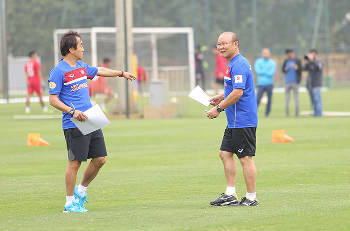 HLV Park Hang Seo trao đổi rất kỹ kế hoạch tập luyện với các cộng sự