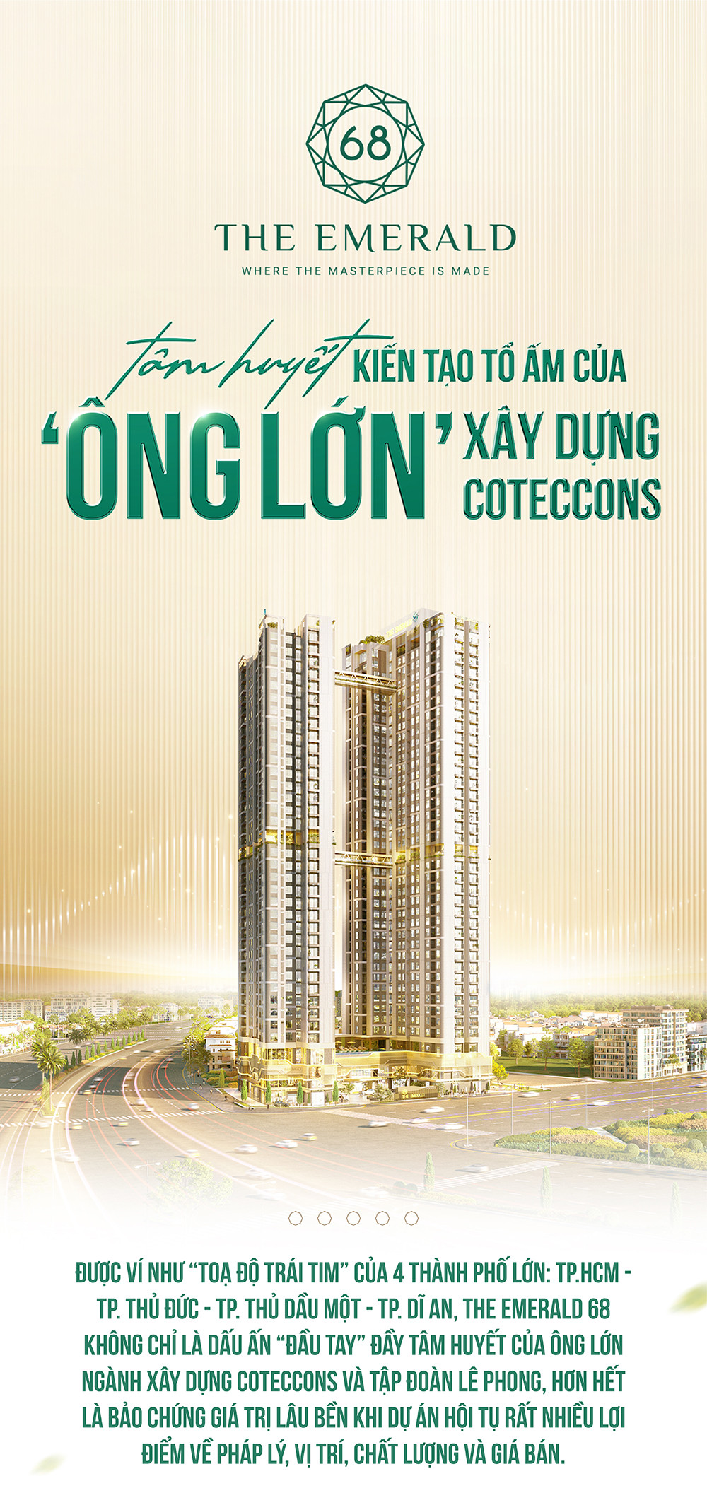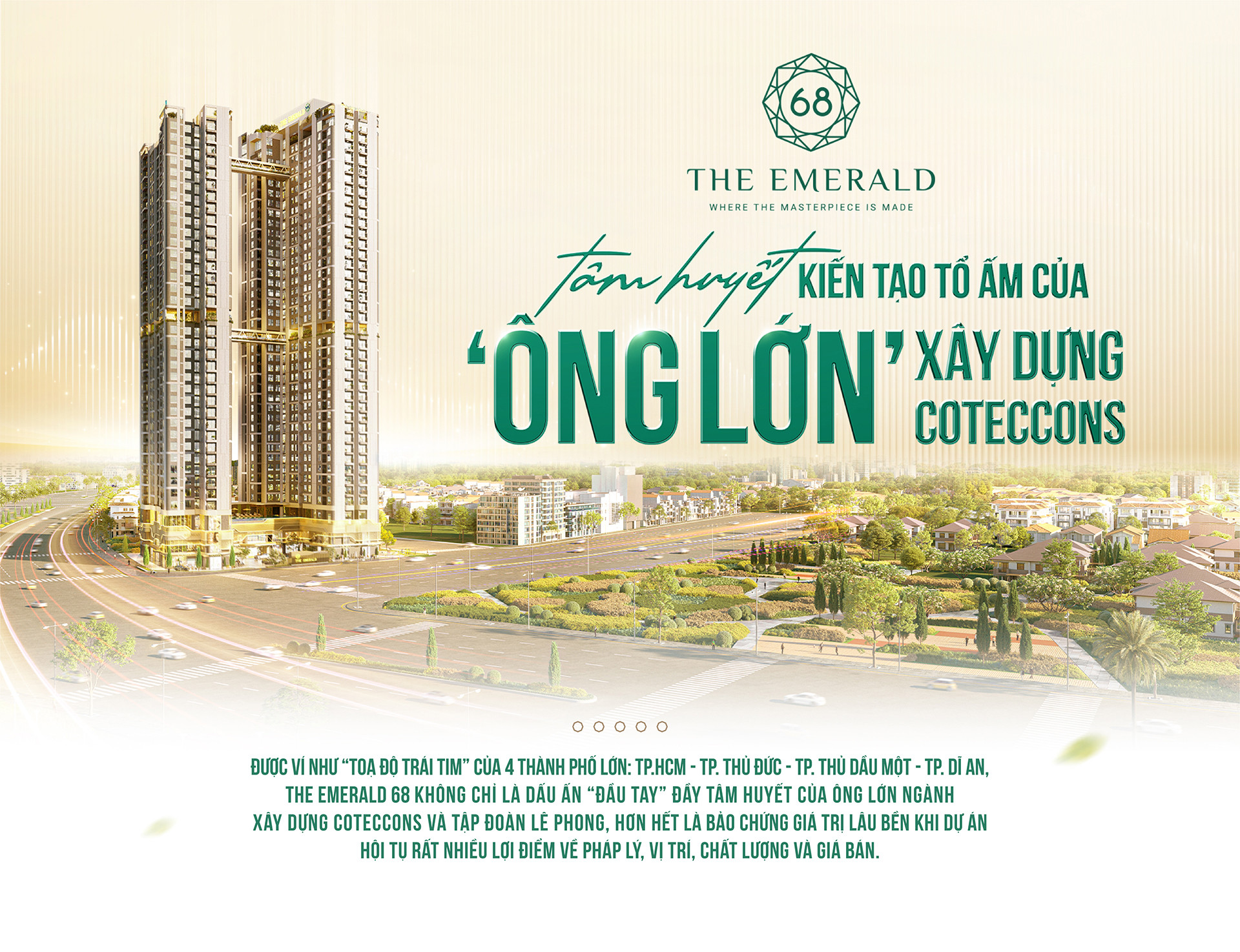 Với phương châm: “Không chỉ xây nhà, mà kiến tạo tổ ấm để đời”, Coteccons đặt trọn tâm huyết vào The Emerald 68.