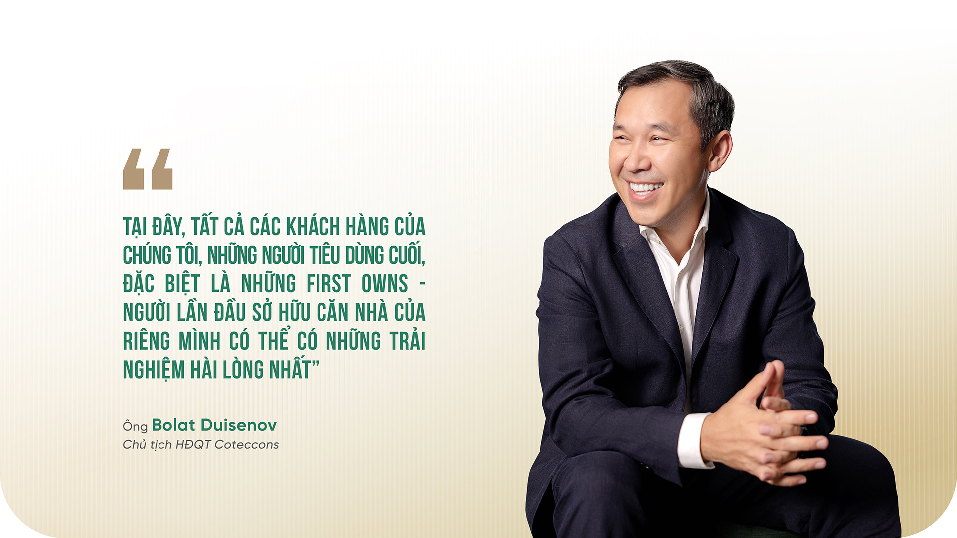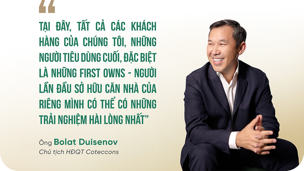 Ông Bolat Duisenov - Chủ tịch HĐQT Coteccons chia sẻ: “Chúng tôi có cơ hội được thể hiện cùng với Lê Phong, được đóng góp tất cả tâm huyết, kinh nghiệm, bí quyết, khối óc sáng tạo của kỹ sư Coteccons để tạo nên một dự án chất lượng cao”.