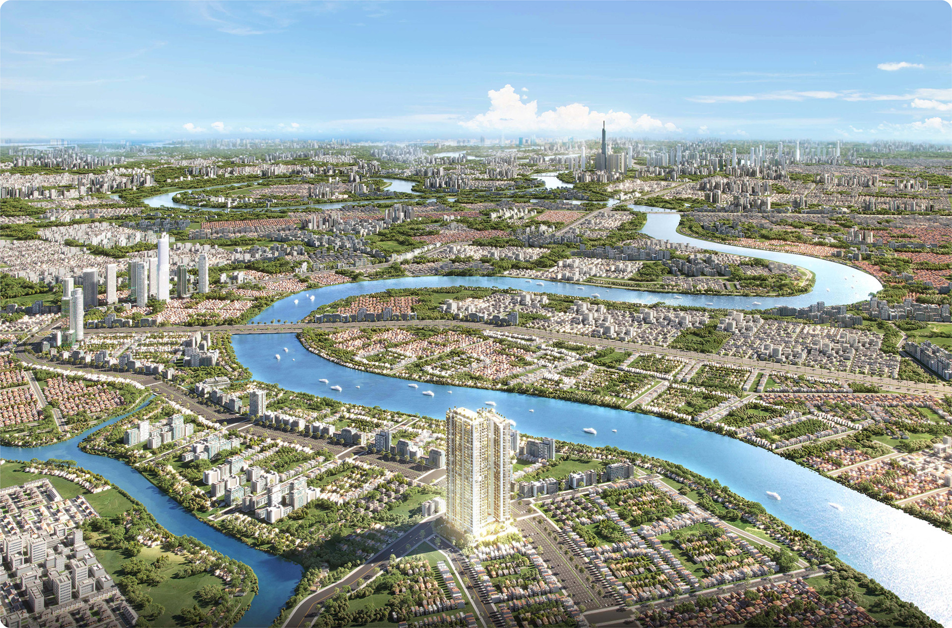 Sáng đi làm tại TP.HCM, tối cư dân trở về không gian sống chất lượng, tiện nghi tại dự ánThe Emerald 68. Với 3 mặt giáp sông Sài Gòn, cư dân tận hưởng sự yên bình, thoáng đãng trong chuỗi tiện ích nội khu hiện đại như: sảnh đón sang trọng, hệ thống thương mại - dịch vụ tại khối đế, hồ bơi vô cực, phố thương mại Ánh Sáng, cầu nối trên không, vườn chủ đề, vườn nhiệt đới, sân chơi vận động liên hoàn cho trẻ em,…
