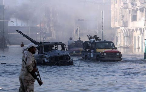 | Bầu trời thành phố Sirte của Libya vẫn ám khói súng. (Ảnh: THX) |