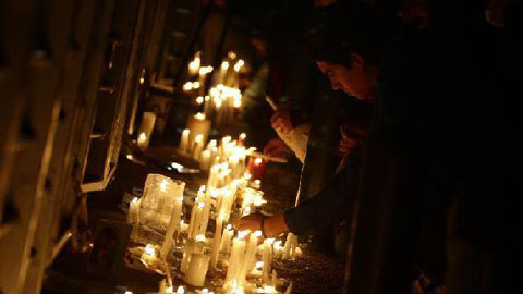| Người dân Chile thắp nến cầu nguyện bên ngoài đài truyền hình quốc gia (TVN) ở Santiago, thủ đô nước này. (Ảnh: THX) |