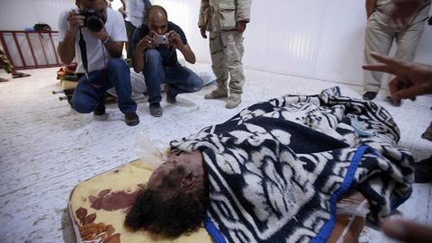 | Thi thể ông Muammar Gaddafi đã bị phơi bày công khai suốt 4 ngày sau khi bị giết. (Ảnh: Reuters) |