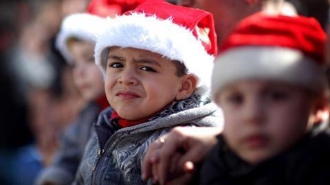 Trẻ em tham dự lễ đón Giáng sinh ở thị trấn Bethlehem, Bờ Tây hôm 24/12/2012. (Ảnh: THX)
