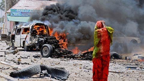 | Ít nhất 10 người chết trong vụ đánh bom gần Phủ tổng thống ở thủ đô Mogadishu, Somali ngày 18/3. (Ảnh: News) |