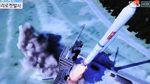 | Hình ảnh mô phỏng vụ phóng tên lửa ngày 12/12/2012 của Triều Tiên trên truyền hình Hàn Quốc. (Ảnh: SBS/Getty) |
