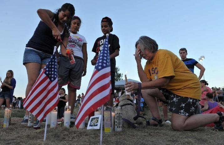 | Người Mỹ thắp nến tưởng niệm các nạn nhân trong vụ xả súng ở Aurora hôm 20/7. (Ảnh: THX) |