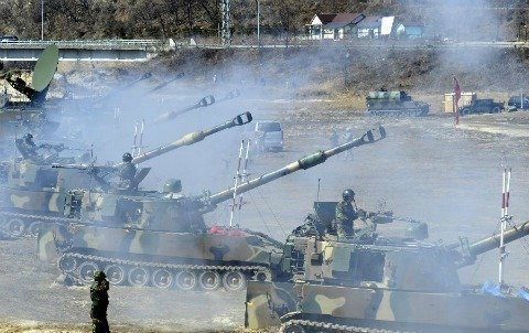 | Hôm 15/3, Hàn Quốc và Mỹ đã diễn tập bắn đạn thật ở Pocheon. (Ảnh: THX) |