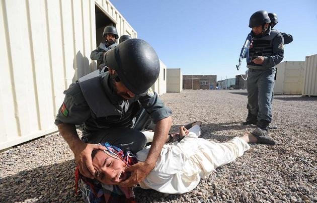 Lực lượng cảnh sát Afghanistan trong buổi huấn luyện ngày 16/5. (Ảnh: THX)
