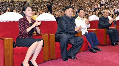 | Nhà lãnh đạo Triều Tiên Kim Jong Un cùng vợ đi xem một buổi trình diễn nghệ thuật hôm 31/7. (Ảnh: THX) |