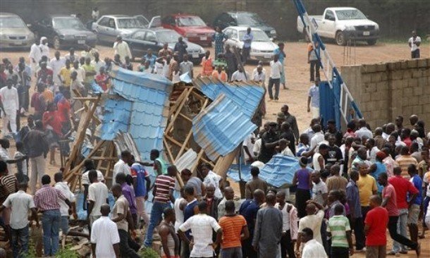 | Người dân Nigeria tụ tập bên ngoài một nhà thờ bị đánh bom hôm 17/6. (Ảnh: AP) |