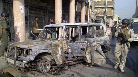 | Một chiếc xe còn trơ khung sắt sau vụ đánh bom đẫm máu hôm 22/12 tại quận Alawi, Baghdad, Iraq. (Ảnh: Reuters) |