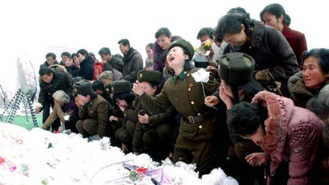 | Người dân Triều Tiên xót thương trước sự ra đi của nhà lãnh đạo Kim Jong-il. (Ảnh: THX) |