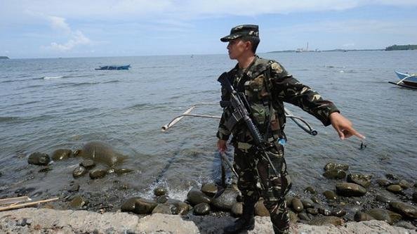 | Một binh sĩ Philippines đứng bên bờ biển tỉnh Zambales, gần bãi Scarborough. (Ảnh: Getty) |