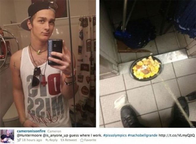 Năm 2012, Cameron Jankowski, nhân viên của Taco Bell, quyết định khiến internet tranh cãi bằng cách đăng ảnh chính mình đi tiểu vào đĩa thức ăn cùng caption "đố mọi người biết tôi làm ở đâu."