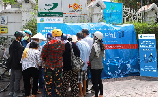 Chị Bùi Thị Ngọc (Q.3, TP HCM) chia sẻ: “Bộ Y tế khuyến cáo người dân nên đeo khẩu trang và rửa tay bằng xà phòng để phòng bệnh. Tuy nhiên, vì đặc thù công việc, thường đi ra ngoài nên việc rửa tay thường xuyên bằng nước là bất tiện. Trong khi các loại bình xịt tay sát khuẩn hiện nay tuy tiện lợi nhưng lại khó mua, giá đắt, đối với những người lao động như chúng tôi thì thật khó tiếp cận. Chương trình của Thế Giới Điện Giải là hành động kịp thời, hào hiệp mà chúng tôi cảm thấy được quan tâm và ấm lòng”.