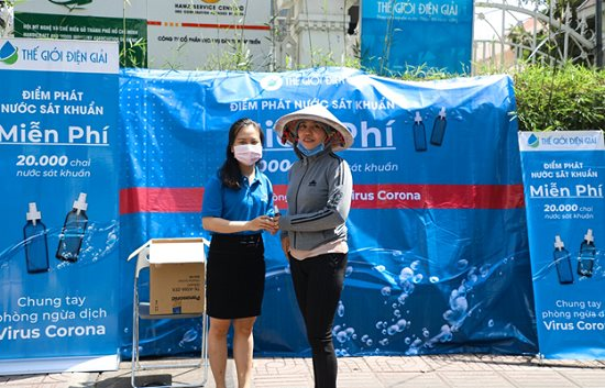 Nói về số lượng sản phẩm được phát miễn phí, theo ông Lê Thành Nhân: “Số lượng 20.000 bình xịt đã phát nhanh chóng và hết trong 2 tuần đầu tiên. Dự kiến, Thế Giới Điện Giải sẽ tiếp tục đặt thêm 10.000 bình xịt về. Nhưng khó khăn hiện nay là tại TP HCM, các loại bình/chai chứa đã hết, các đơn vị sản xuất vỏ bình không đủ cung cấp thêm. Vì thế trước mắt bà con có vỏ chai/bình đựng, vật dụng chứa nước thì cứ mang đến các showroom gần nhất của chúng tôi để nhận nước rửa tay, sát khuẩn, khử trùng các vật dụng miễn phí”.