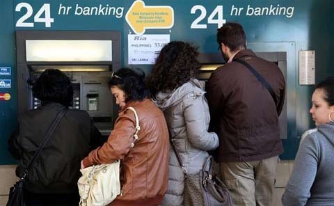 Người dân rút tiền ở máy ATM tại thủ đô CH Síp. |