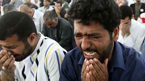 Các tín đồ ở Bahrain khóc và hò hét phản đối chính phủ trong một buổi cầu nguyện trưa. (Ảnh: AP)