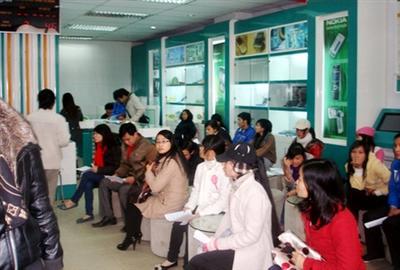 | Tại cửa hàng giao dịch của Viettel trên đường Hoàng Quốc Việt sáng nay (26/1) có rất nhiều người ngồi chờ đợi để đổi thẻ cào bị bong tróc, bên trên có treo cả đồng hồ hiện thị số để báo đến người đợi số bao nhiêu. |