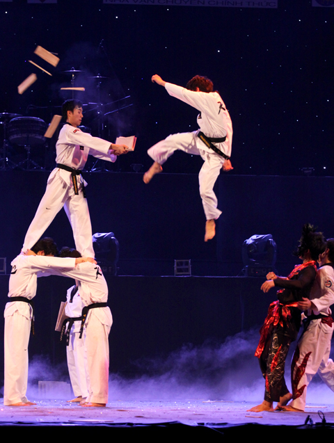 Teakwondo, một môn võ nổi tiếng khi nhắc đến Hàn Quốc đã có màn trình diễn ấn tượng với người xem.