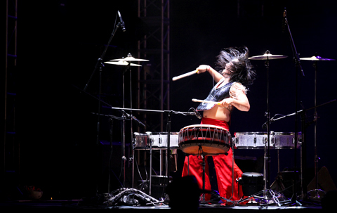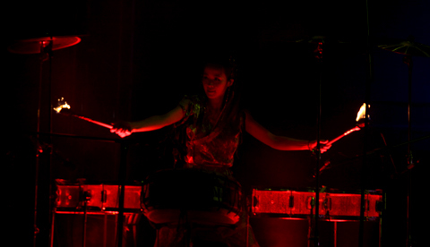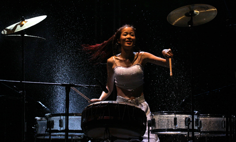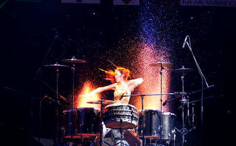 Tiết mục ghõ với sự kết hợp của nhạc cụ, hiệu ứng từ lửa, nước và khả năng chơi nhạc cụ đến thăng hoa