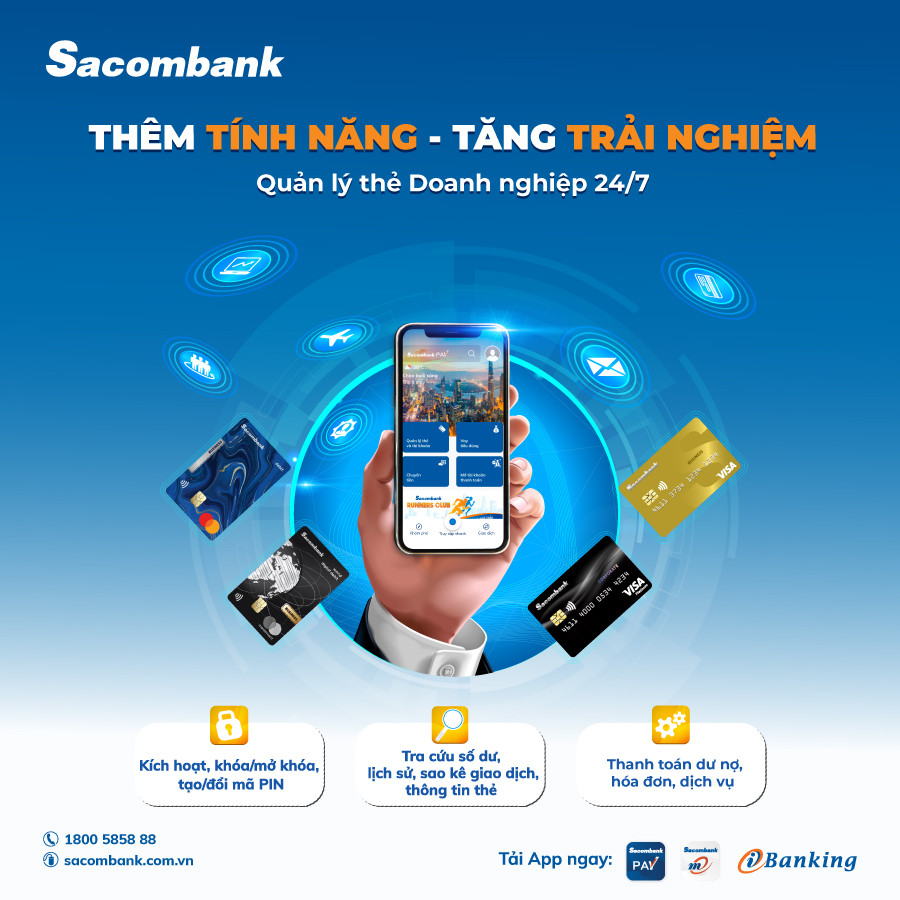 Hơn hết, trong những trường hợp thất lạc hay mất thẻ, chủ doanh nghiệp có thể yêu cầu khóa thẻ ngay lập tức bằng cách gọi điện tới đường dây nóng 24/7 của Sacombank.