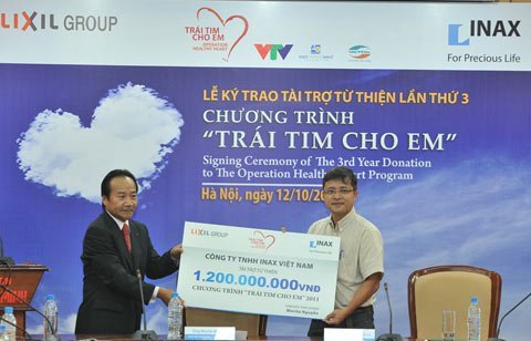 Ngày 12/10/2011, Công ty TNHH INAX Việt Nam ký cam kết với Đài Truyền Hình Việt Nam - đơn vị đại diện “Quỹ Tấm Lòng Việt” về việc tiếp tục tài trợ thêm 1,2 tỷ đồng cho chương trình “Trái tim cho em”. Với bản cam kết này thì đây là năm thứ 3 liên tiếp INAX Việt Nam tham gia tài trợ cho chương trình với tổng số tiền tài trợ lên đến 3,2 tỷ đồng.