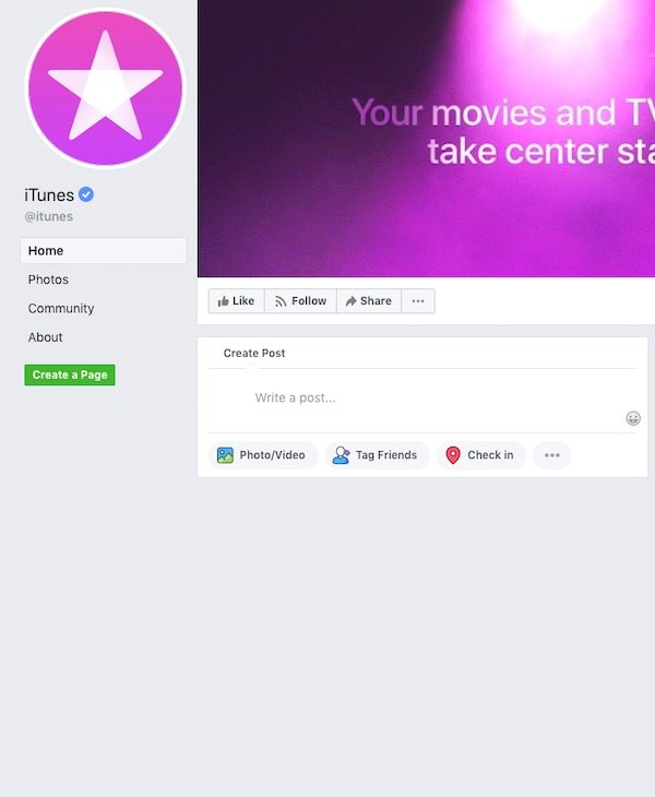Theo diễn đàn Reddit, Apple đã xóa tất cả nội dung mạng xã hội trên trang Facebook iTunes, bao gồm bài viết, ảnh, video. Điều này dường như diễn ra trong 24 giờ qua. Còn theo MacRumors, có vẻ Apple đã hợp nhất trang iTunes cùng trang Apple TV trên Facebook, không chỉ về nội dung mà cả gần 30 triệu “like” và cả ngày tạo trang 29/4/2009.