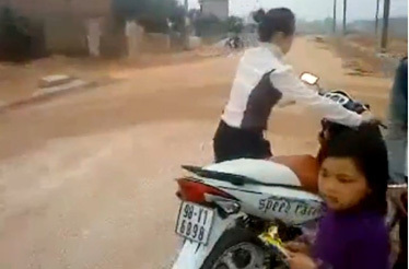 một nữ sinh. Ngoài ra còn có ít nhất 1 đối tượng khác, đứng ngoài để quay lại