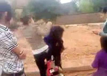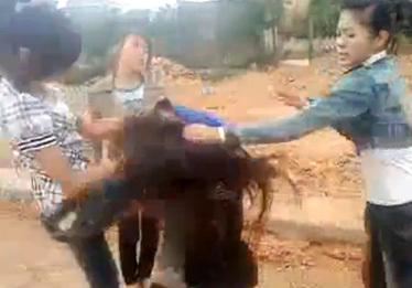 3 cô gái xông vào đánh, 2 cô gái khác ở ngoài quay lại video.